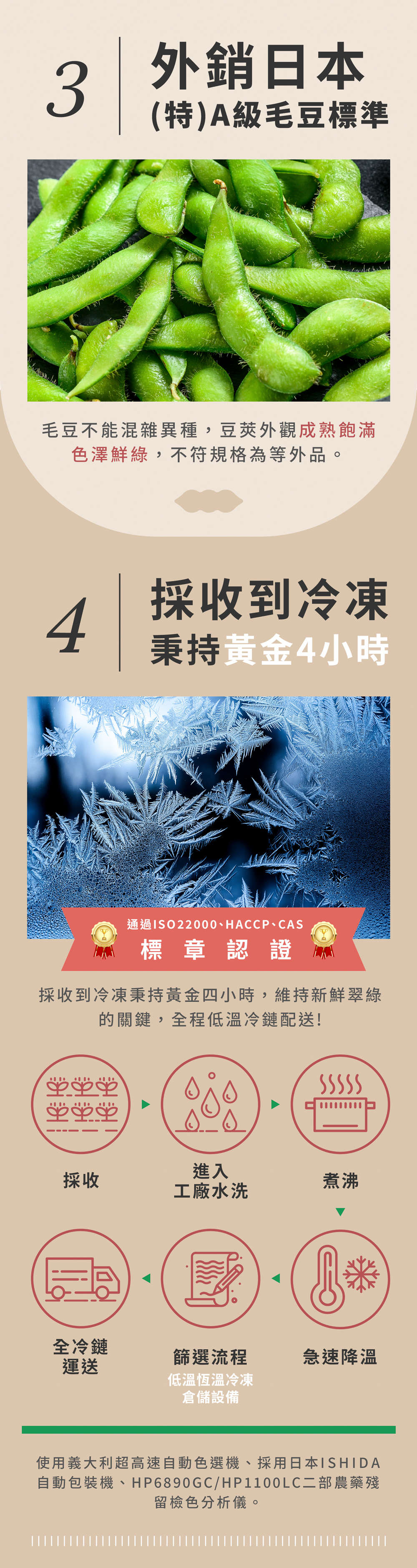 毛豆退冰後發現顏色變黃變深褐色屬正常現象可安心食用。